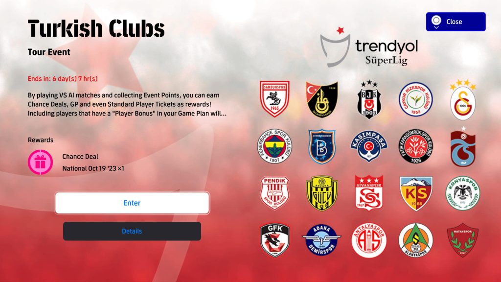 A gép elleni Tour Event-ben a free játékoson kívül SüperLig player ticket és 60.000 GP szerezhető. Online pedig a „jól megszokott” 50 Coin, valamint egy illetve kettő Skills training gyűjthető be.