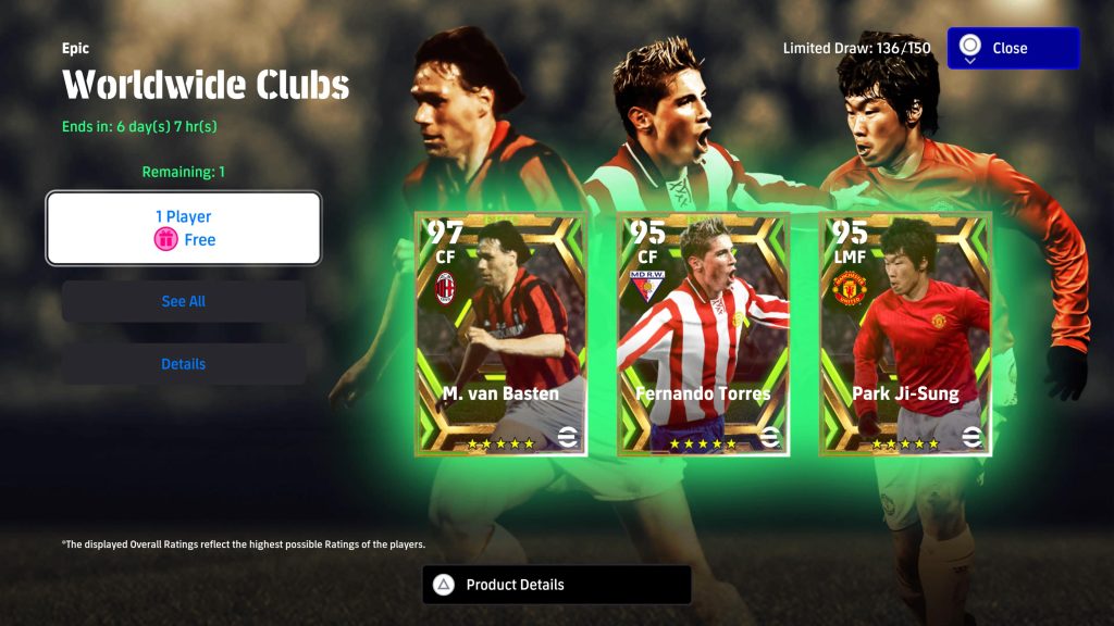 Továbbra is jár a napi free Epic Worldwide Clubs chance. Immár harmadik hete izgulhatunk, hogy megszerezzük-e van Basten-t, Dida-t, van der Vaart-ot, Fernando Torres-t, Park Ji-Sung-ot, Rosicky-t vagy Lizarazu-t.