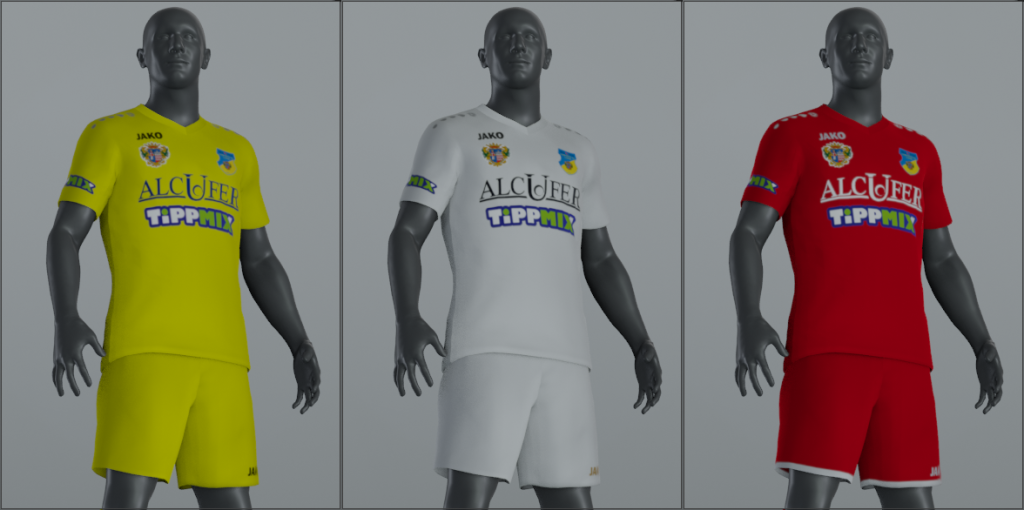 Hazai, vendég és kapus szerelések készültek a csapatnak.